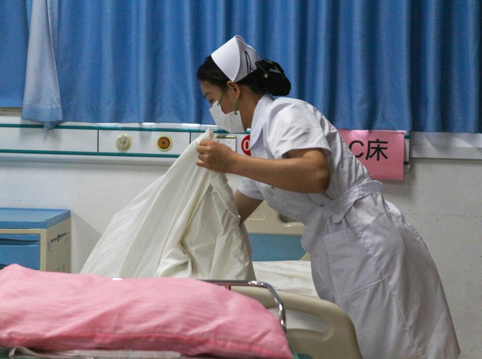 护理铺床虽然是最基本的的技能,但要练好技能,需要进行艰苦训练。一个优秀的护士必须进行千百次的训练才能折出一个漂亮的床角,整洁的床,看到了护理人员对细节的精益求精,对职责的高度重视。
