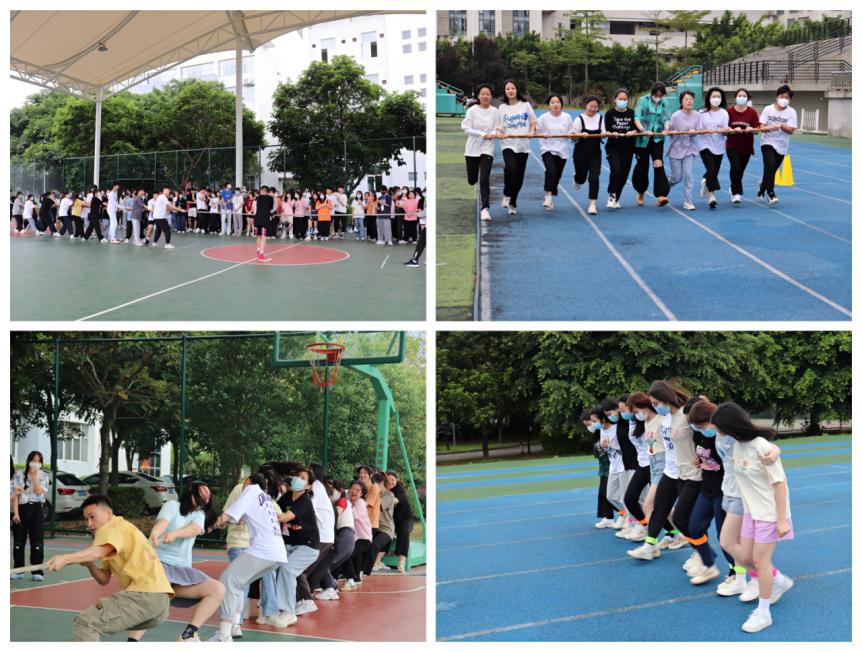 本次活动分为拔河、多人多足以及长杆障碍跑三个项目。拔河比赛中,双方队员握紧绳子,他们分别脚蹬着地,身体向后倾,拼命地拉拽着,场下的观众也齐声呐喊,为参赛选手们擂鼓助威。紧接着进行的是多人多足比赛,这是一场团队默契的比拼,大家互相配合,掌控着向前的力度和节奏,发出一致的口号奔赴终点,为队伍的胜利共同努力。最后进行的是长杆障碍跑比赛,参赛选手们握紧手中的长杆,步伐一致地向前迈进,一次又一次精准地躲避开了场上的障碍物。整场活动在轻松、欢快的氛围中进行,操场洋溢着青春活力,充分展现着学前学子积极向上、努力拼搏的精神风貌。