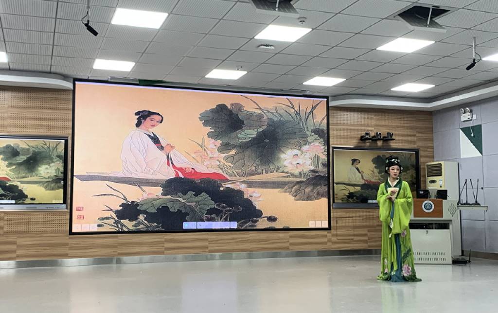 在经典古诗词沈园二首《声声慢》、《钗头凤》朗诵中,表演艺术专业的同学们展现了越剧身段元素,为朗诵作品增添了别样风采,展现我们对中华经典的传承与创新。