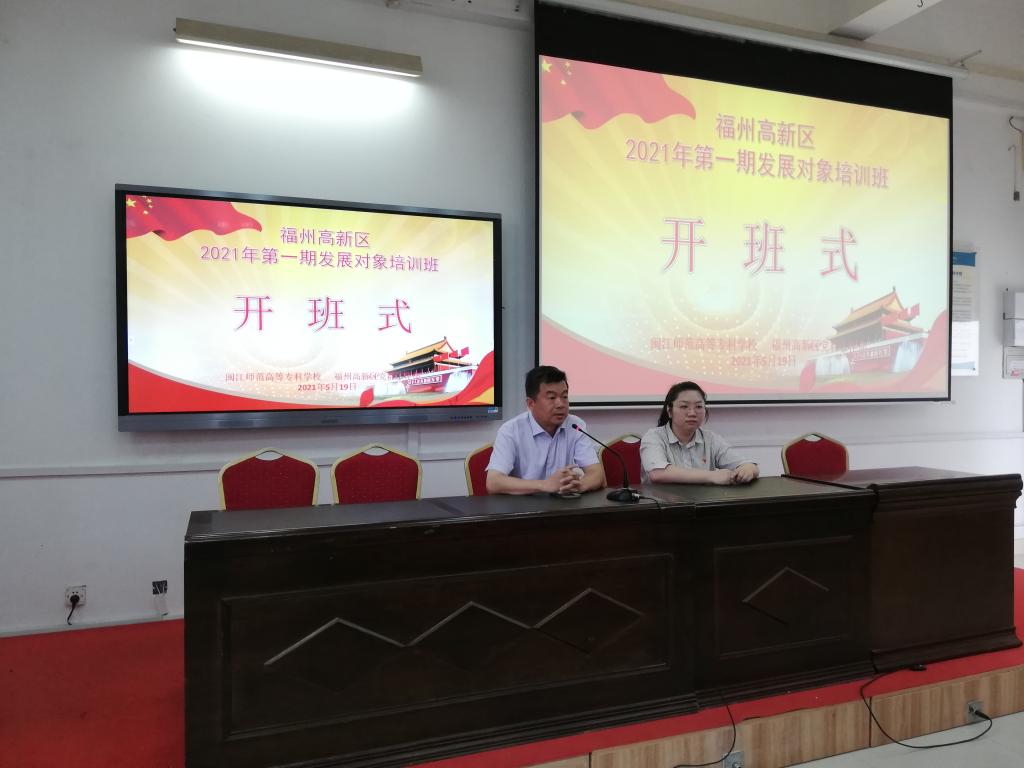为学习贯彻党的十九大和习近平总书记一系列重要讲话精神,切实做好高新区党员志愿者活动,根据福州高新区党工部的要求,整合福州地区优质培训资源, 5月19日上午, 2021年福州高新区第一批发展对象培训班在我校正式开班,共32名发展对象参加了培训。闽师专继教中心副主任刘旭霖出席了开班式,高新区党群工作部杜如颖做为培训班带队负责人进行主持。