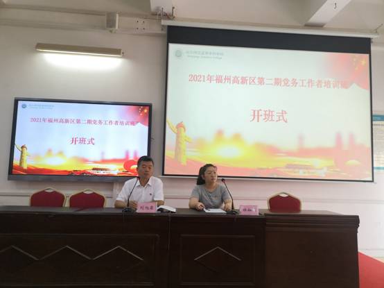 为庆祝建党一百周年,深入开展党史学习教育和习近平在闽考察重要讲话精神的学习,进一步提高党务工作者的政治理论水平,增强使命感、责任感,强化基本素养,根据福州高新区党群工作部的要求,整合福州地区优质培训资源,我校承办了2021年福州高新区第二期党务工作者培训班。6月16日上午培训班正式开班,共49名党务工作者参加了培训。高新区党群工作部杜如颖主持开班仪式,闽师专继教中心副主任刘旭霖出席了开班式。