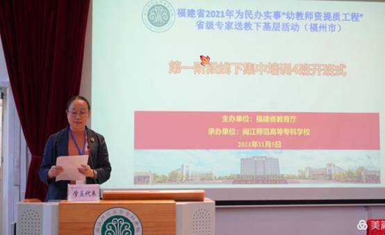 为了进一步加强民办幼儿园管理者、骨干教师专业队伍建设,切实加强教师队伍的业务素质和专业水平,11月5日上午,由福建省教育厅主办、闽江师范高等专科学校承办的2021年为民办实事“幼教师资提质工程”省级专家送教下基层活动第一阶段线下集中培训4班正式开班。