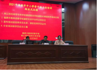 26日下午,由8位学员代表进行成果汇报,回顾了培训过程、培训收获及对未来工作的规划等。导师代表为学员的进一步成长指明方向和策略。结业式上,闽江师范高等专科学校继续教育学院副院长杨国英为本次培训班做了精彩的总结并提出三点建议:一是要继续保持交流平台,促进导师与学员、学员与学员之间更进一步交流;二是学员要学以致用,将培训所学、所思、所悟迁移到日常班主任工作中,促进行为转变;三是要引领辐射,在校本、区域班主任工作中,发挥领头羊作用,实现培训增值。福鼎市教师进修学校副校长吴平安回顾了本次培训历程,本次培训为期三年,分别由全国继续教育网、福建开放大学、闽江师范高等专科学校承办,充分肯定了闽江师范高等专科学校培训工作的规范化、专业化和精准化。