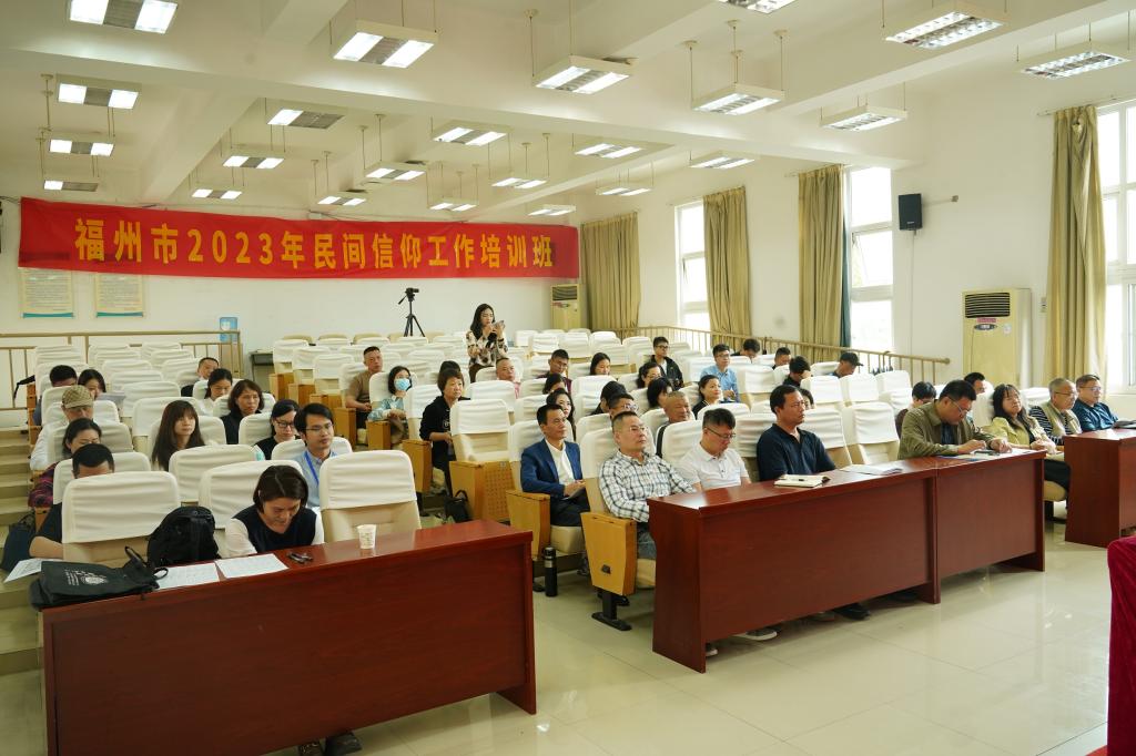 本期培训班旨在发挥民间信仰活动场所的深厚历史文化底蕴,弘扬正气、传承文化、榕台交流、公益慈善等社会和谐积极作用,将采取课堂内和课堂外、理论和实践相结合的方式,邀请了省、市专家学者讲授闽台民间信仰、民间信仰与地方文化的传承建设、民间信仰政策宣讲等内容,同时前往连江县魁龙坊三公庙、江南镇梅洋村史学馆、梅洋张圣真君堂、东湖镇天竹村等地开展铸牢中华民族共同体意识主题教育现场教学。希望学员们经过系统的学习,对民间信仰政策、地方文化有更进一步的认识,切实提高自身整体素质和履职能力。