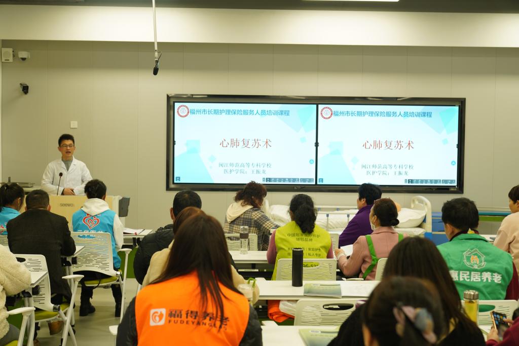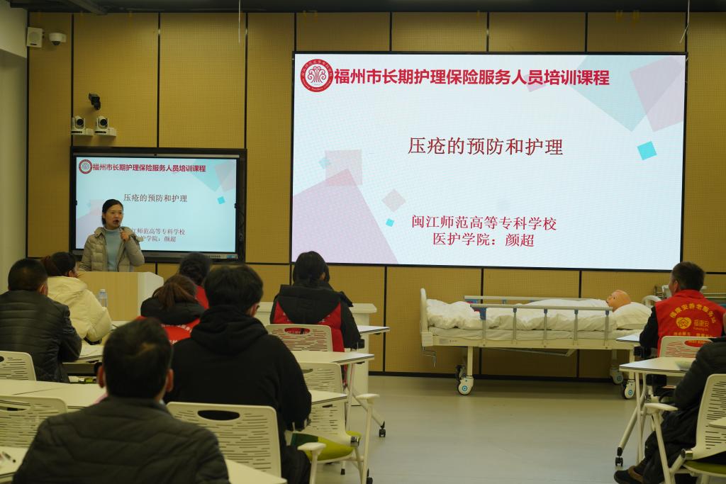 为了不断提高长期护理保险服务人员的专业素养和服务水平,以满足更多失能老人的护理需求,闽江师范高等专科学校于2024年1月15-19日在旗山校区开展为期5天的长期护理保险服务人员培训班。本次培训班共有78名学员参加。