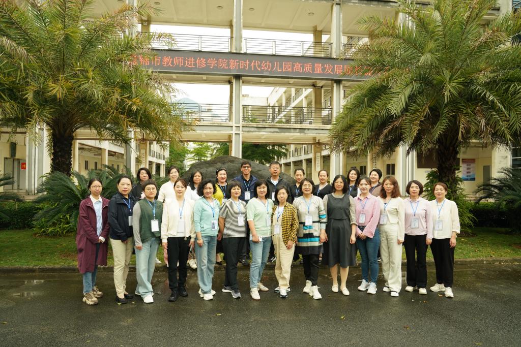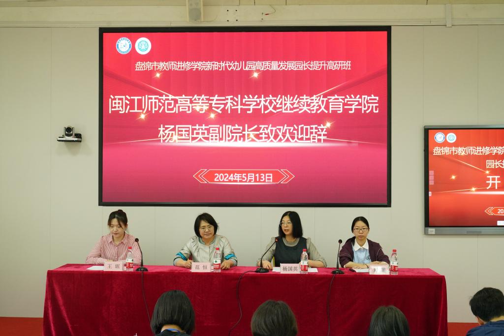 为顺应时代发展规律,构架跨越发展,提升园长办园管理能力,闽江师范高等专科学校与盘锦市教师进修学院、大连学习力教育研究推广中心进行合作,于2024年5月12日-18日在福州、厦门两地开展为期7天的新时代幼儿园高质量发展园长提升高研班。开班仪式于5月13日上午在旗山校区举行。闽江师范高等专科学校继续教育学院副院长杨国英、盘锦市教师进修学院学前研训部主任范恒、大连学习力教育研究推广中心培训部主任王珉出席开班式。来自盘锦市共20位幼儿园园长参加培训。