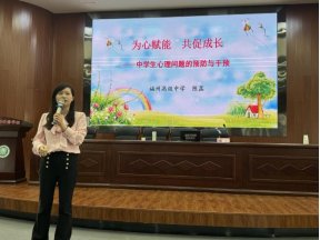 11月3日上午,培训班邀请到福州高级中学陈菡老师开设以《为心赋能 共促成长——中学生心理问题的预防与干预》为题的讲座,她由一个真实的故事讲起,强调了心理健康在学生全面成长中的关键作用。班主任作为学生成长道路上的重要引导者,必须具备良好的心理素质和心理健康知识,才能培养出心理健康的学生。她强调积极的语言是引发个体积极情绪、发现个体优点及潜能的重要工具。耐心的倾听是建立良好关系的第一步,开放式询问和共情能力也是班主任在与学生沟通中必须掌握的技巧。班主任们更要学习通过观察学生的行为变化、情绪反应等迹象,及时发现并干预学生的心理问题。