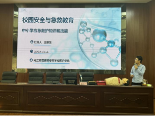 校园安全是教育工作中不可忽视的一环,在每个学校都一直存在着诸多问题和挑战,包括复杂的校园环境,师生安全意识的薄弱,突发事件应急处置能力的不足等。这些同样成为班主任必须面对的工作,因此,这次培训邀请了闽江师专医护学院的王振龙老师带来《中小学应急救护知识与技能》,旨在提升班主任们的安全工作处理能力。王老师通过现场演示,讲解了心肺复苏技术的操作流程和规范,还针对气道异物梗阻,教授海姆立克急救法。最后又分享了常见意外伤害的现场救护知识,干货满满。课堂上,学员们积极参与互动,理实结合,迅速掌握了急救技巧,提升了自身综合能力。