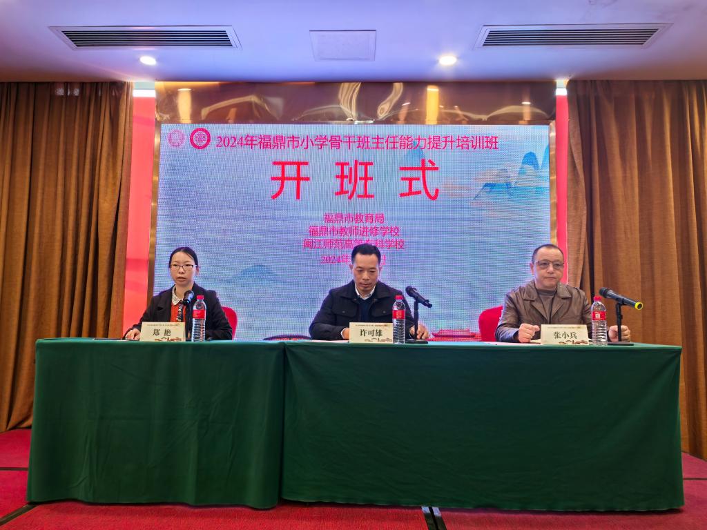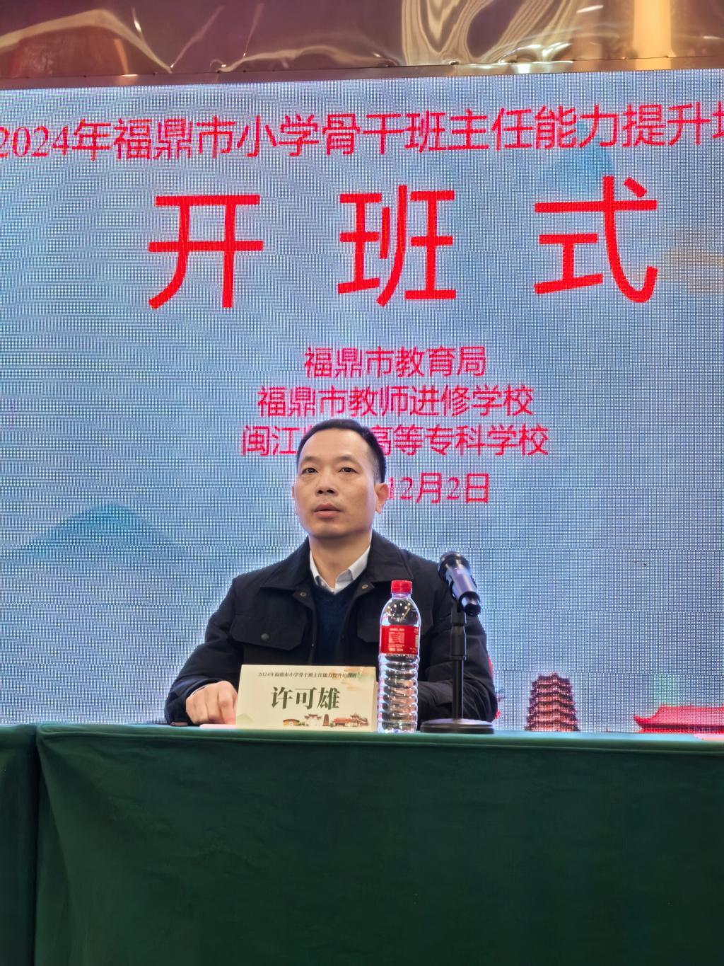 12月2日上午,福鼎市教师进修学校许可雄副校长、张小兵主任以及闽江师专继续教育学院郑艳老师出席开班仪式并讲话。他们的言语掷地有声,深刻阐述了班主任工作对学生健康成长和教育事业发展的重要意义,为此次培训拉开了庄重且充满期待的序幕。
