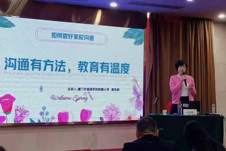厦门外国语学校附属小学万景校区蔡思琪校长的《沟通有方法教育有温度》讲座,犹如一场及时雨,为培训班的每位学员带来了深入且实用的沟通智慧。她以丰富的教育经验和敏锐的洞察力,为学员们开启了一场关于家校沟通的深度探索之旅。