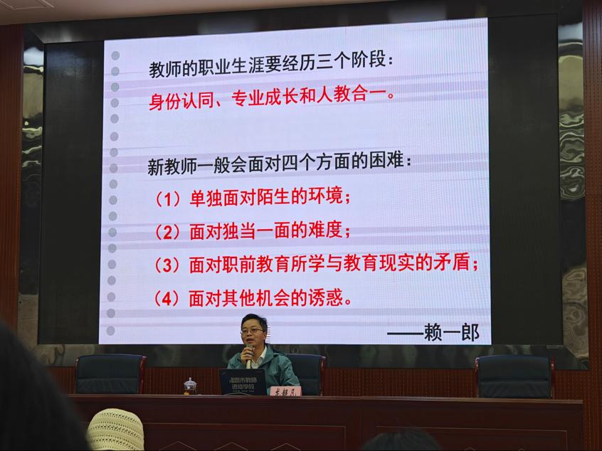 同时,刘老师通过几篇教学设计结合片段教学讲演,详细阐述了如何做教学设计、片段教学以及专业养成路径等内容,充分为新教师后续的教学工作和片段教学演示指明了方向。此讲座为教师们搭建了学习与交流的平台,有助于提升教师的教学设计与片段教学能力,促进教师专业素养的发展,为新教师教学质量的提升注入新动力。