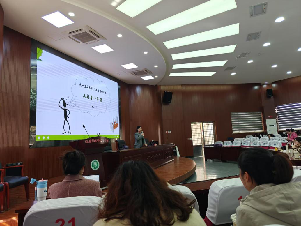 福鼎市教育局人事股兼师训股谢家贵股长总结讲话,对老师们赋予希冀:希望老师们以德立身,做价值引领的播种者,方能行稳致远;要做学生心灵成长的守护者,同时以学为基,教学相长;善用新时代网络资源与新技术,融入于日常教学中。