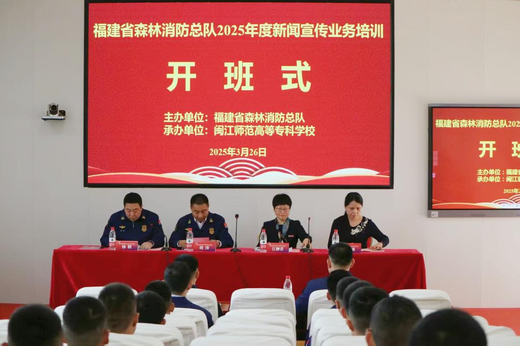 受福建省森林消防总队的委托,我校于2025年3月25日-4月3日开展“福建省森林消防总队2025年度新闻宣传业务培训班”活动。3月26日上午,培训班开班仪式在旗山校区举行,福建省森林消防总队政治部主任胡涛、闽江师范高等专科学校副校长江柳青、闽江师范高等专科学校继续教育学院院长兰浈出席仪式,来自福建、浙江、江西、海南四省的33位消防指战员参加,仪式由福建省森林消防总队教育宣传处副处长杨精主持。