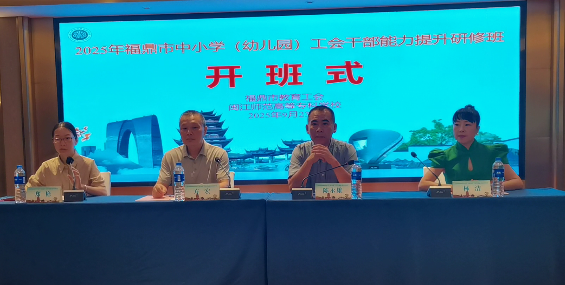 福鼎市教育局党组成员、副局长、教育工会主席陈永雄,福鼎市教育工会副主席方宏,福鼎市教育工会副主席林洁出席开班仪式,闽江师专继续教育学院培训部郑艳老师主持。