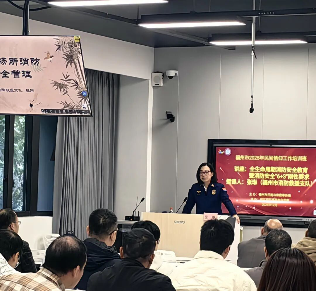 培训班通过专题讲座、现场教学、分组讨论等形式开展,来自福建省宗教事务服务中心、福建师范大学社会历史学院等单位老师,以及福州市消防救援支队、福州市民族与宗教事务局民间信仰工作处等相关同志,围绕学习贯彻党的二十届四中全会精神、民间信仰政策解读、全生命周期消防安全教育、福建民间信仰的祖庭文化等内容作专题讲座,培训班还专门开展了以增强闽都文化自信,弘扬中华优秀传统文化为主线的专题学习和现场教学。