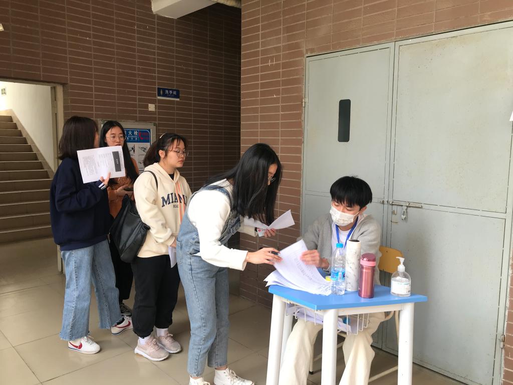 4月10日,考场全面拉起警戒线,各楼层及教室监控全部开启。学生依次进入候考室进行等候,考务人员对其讲解考试注意事项以及考试流程,按照考生准考证号码每批次40人有序的进行人脸识别并电脑随机抽签考试机号,其次由专人引导进入准备室对应的考试号进行阅卷,随后再由专人引导到各自指定楼层测试室,各楼层又安排专人对每位考生身份进行再次确认和登记个人信息,做到层层严格把关。
