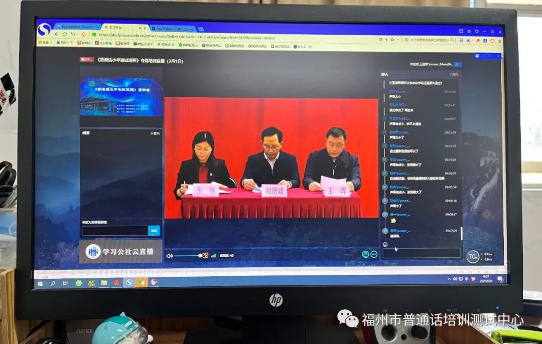 2023年3月1日,教育部语言文字应用管理司就新修订的《普通话水平测试规程》举办了专题宣讲会,会议以网络直播方式开展。会议主要解读了新修订的《普通话水平测试规程》,演示了新版普通话水平测试管理系统,全国部分测试站还在会上交流了经验。我中心全体人员全程观看了直播。
