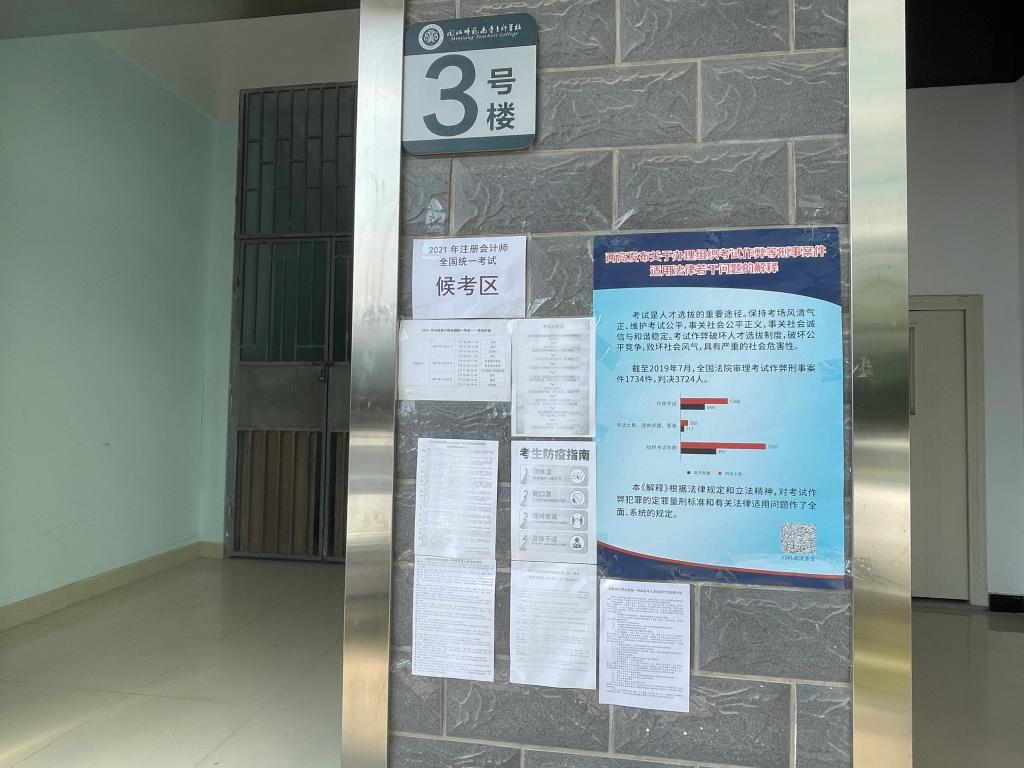 我校(仓山校区)于2021年8月27日-29日承接了“2021年注册会计师全国统一考试”。为了确保考试顺利进行,一方面技术人员于8月23日-26日对所有机房进行了一次模拟考试软件的安装测试,另一方面考务人员根据考务手册的要求对考场环境进行布置(设置了路标、路牌等)。