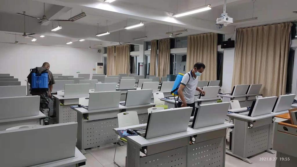考试当天学校安排医护及工作人员团队在校门口做好进校人员的体温检测以及查验绿码、核酸报告等工作。考场区还准备了观察室及隔离考室,并要求考生进入考场后立即使用免洗洗手液进行手部消毒,考试全程佩戴好口罩。公安、交警、无线电团队做好全程后勤保障,以便考试过程发生突发状况能够给予及时解决。考试结束当天还安排消杀团队对考点通道、门把手、桌椅、厕所、楼梯、空调系统、考试机房、考试设备等高频接触表面进行消杀工作。