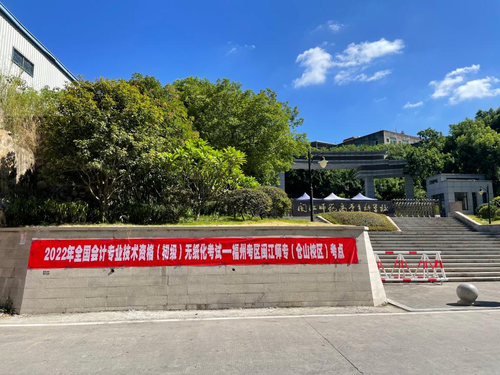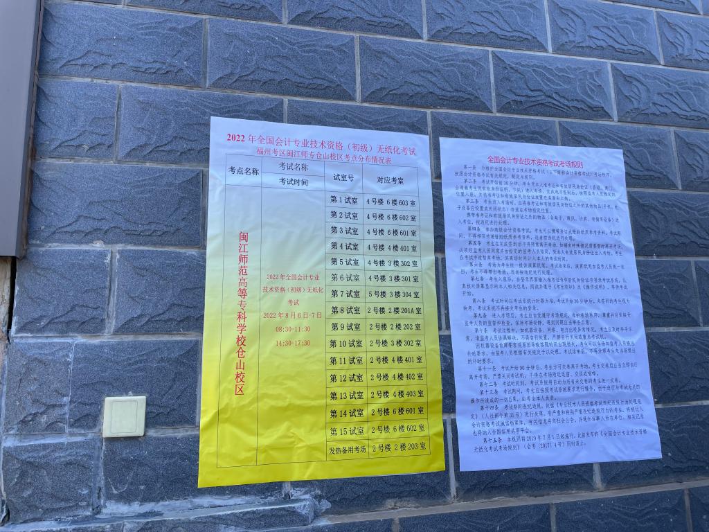 我校仓山校区于2022年8月6日-7日承接了“2022年全国会计专业技术资格(初级)无纸化考试”。为了确保考试顺利进行,考前考务人员根据考务手册的要求对考场环境进行布置(设置了路标、路牌、警戒线等)、考试所需材料准备。