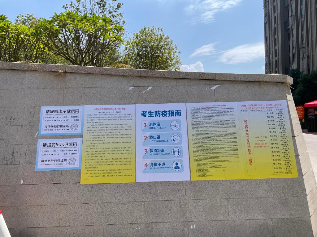 我校仓山校区于2022年9月17日上午承接了“ 2022年全国演出经纪人员资格认定考试(机考)、18日上午开展了第11期福建省专项职业能力统考。为了确保考试顺利进行,考前考务人员根据考务手册的要求对考场环境进行布置(设置了路标、路牌、警戒线等)、考试所需材料准备。