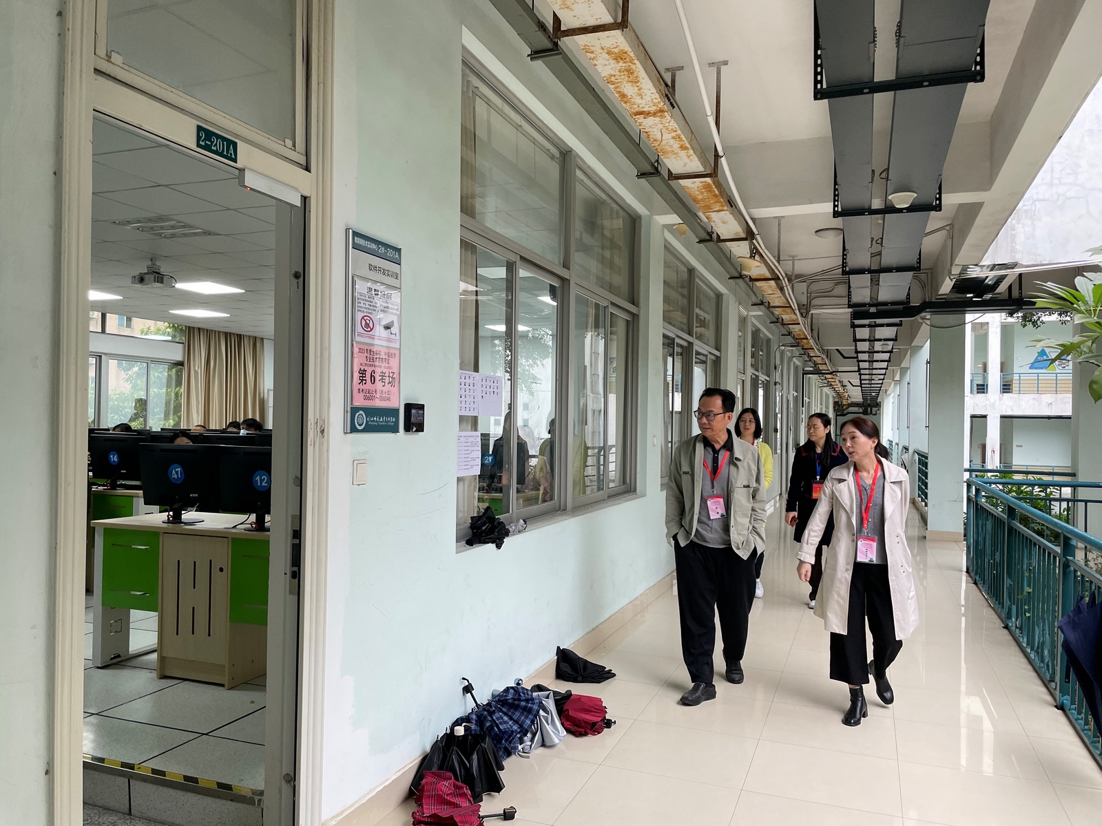 12日上午,市人社局党组成员、副局长张莺(考区副总主考)赴我校仓山校区巡视,在主考、副主考等相关人员的陪同下,实地查看了考场监控、考场分布及考场布置,了解考点考务安排、设备运行、服务保障、应急处置预案准备等情况。