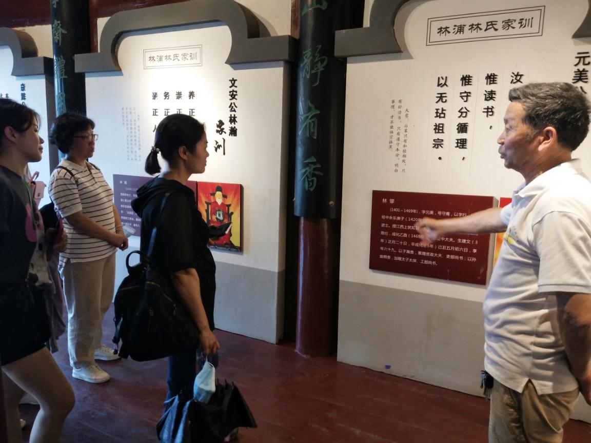 林浦濂江书院始建于唐末,迄今已有一千多年历史,相传朱熹及弟子黄榦等曾在此讲学,是福州古代书院的杰出遗存。林浦自朱熹始,因林氏五尚书而显,形成了独特孝廉文化。伴随着讲解员的生动讲解,大家依次参观了朱子祠、家风家训馆、朱子讲堂。在家风家训馆讲解员说道:“‘养正心、悟正道、务正学、亲正人’是林家传承几百年的家风家训,林氏三世五尚书,皆内行修洁,为时所称。”“七科八进士、三代五尚书”的历史佳话,彰显了林氏家族子弟恪守家风家训、不忘清正廉洁的精神,林氏“四正家风”的正能量润物细无声地将清风正气注入在场每一位党员的心中。