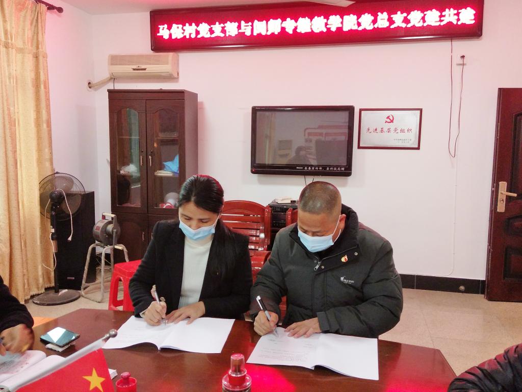 为进一步推动乡村全面振兴工作,充分发挥基层党建的核心引领作用,2022年12月2日下午,继续教育学院党总支副书记兰浈带队到闽侯县上街镇马保村与马保村党支部举行党建结对共建签约仪式。继续教育学院党总支副书记兰浈、马保村党支部书记陈祥云代表双方在协议书上签字,未来双方将围绕共建组织、共办活动、共做实事、合作共赢等方面开展结对共建。