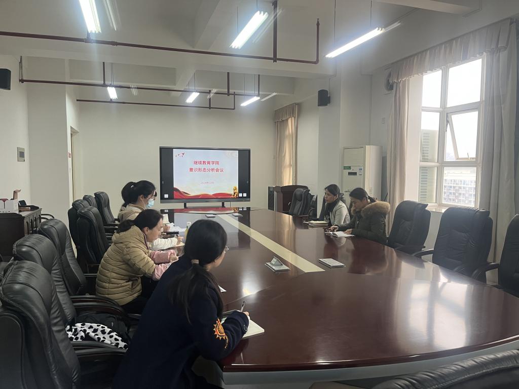 2024年3月6日下午,继续教育学院在715会议室召开2024年春季意识形态工作分析研判会。学院总支委员及各部门负责人参加。会议由学院党总支副书记兰浈主持。