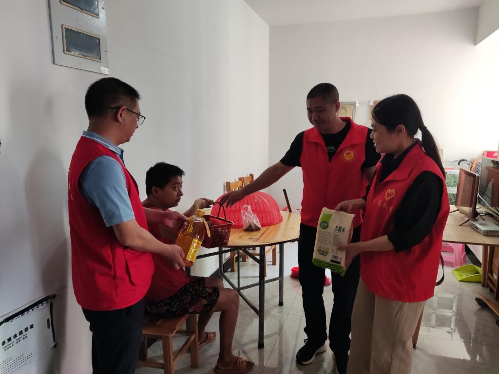 片片粽叶,包裹着浓浓温情,缕缕清香,传递着美好祝愿。活动中,志愿者们进村入户,将一份份裹满温情的“爱心粽子”、大米和食用油等慰问品送到辖区的高龄老人和困难群众的手中,并为他们送上节日的问候与祝福,让他们一起品尝糯粽香、共享端午情,营造了和谐温馨的良好氛围。