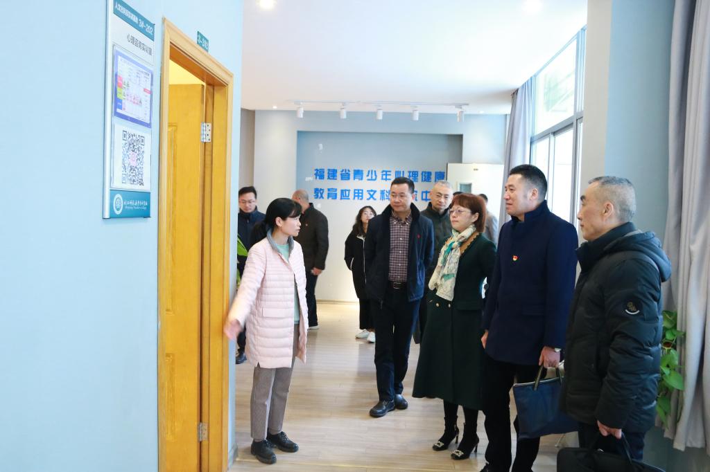 在副校长谢敏峰、团委副书记(主持工作)王海波、人文系党总支书记林朝阳、人文系副主任(主持工作)陈勤的陪同下,指导组与福州市计生协一行实地察看了青春健康基地、团体活动辅导室、表达性艺术治疗室、影音欣赏室等。