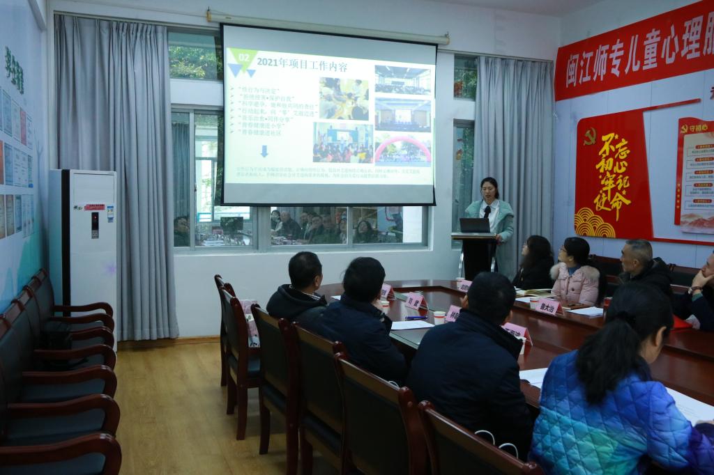 心理教研室主任谢姗姗详细介绍了我校青春健康实训基地活动场地的基本情况,讲解基地依托人文社科系实训室和福建省青少年应用文科中心的功能概况。
