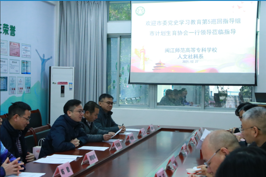 为全面贯彻落实关于进一步深化党史学习教育“我为群众办实事”实践活动有关精神和“健康福建2030”行动规划,推进福州市计划生育协会“我为群众办实事”实践活动项目——青春健康进校园活动取得实效, 2021年12月27日,市委党史学习教育第五巡回指导组、福州市计划生育协会一行到我校青春健康基地开展专项工作调研。