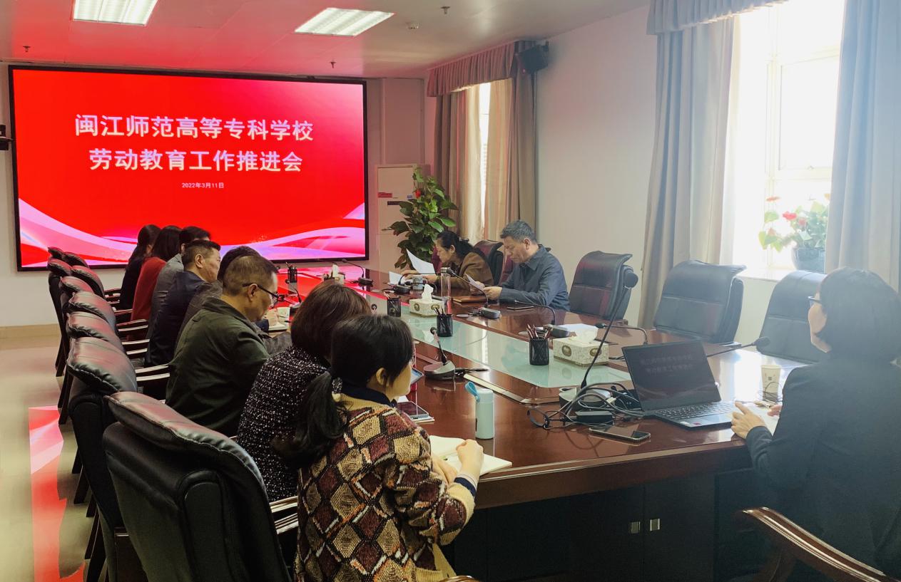 为全面落地实施我校劳动教育,落实立德树人根本任务,推动学生德智体美劳全面发展,促进“三全育人”综合改革,3月11日,召开校劳动教育工作推进会议,校党委书记陈荣生、副校长林旻,宣传统战部、学生处、教务处、后勤保卫处、附属实验小学、附属幼儿园等部门相关负责人参加会议。