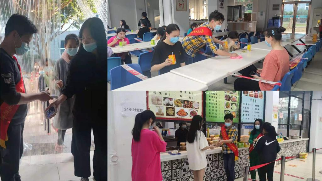 连日来,学院党政领导及教师党员组成志愿者队伍积极投入到防疫志愿服务中,有的顶着炎炎烈日,引导师生有序参与核酸检测;有的参与后勤保障,为师生端饭送水;有的坚守食堂门口,监测师生体温……贴心周到的服务,传递着无微不至的温暖。学院党委书记江柳青、院长徐青等党政领导还带领学工团队的教师党员分别深入旗山校区和甘蔗校区学生寝室、食堂,给同学们送去疫情防控期间的关心和问候。班主任辅导员们每日下宿舍,党员教师组建宿舍楼工作队,当楼长、梯长,实地了解同学们疫情防控期间的线上学习、毕业设计、就业与升学、食堂伙食、日常生活及心理健康等情况,鼓励学生认真做好个人防护和自我管理,养成良好的生活卫生习惯,保持规律的生活作息,积极配合学校的疫情防控工作,加强身体锻炼,保持积极向上的良好心态,为封闭在校园中的同学们增强了战“疫”信心。