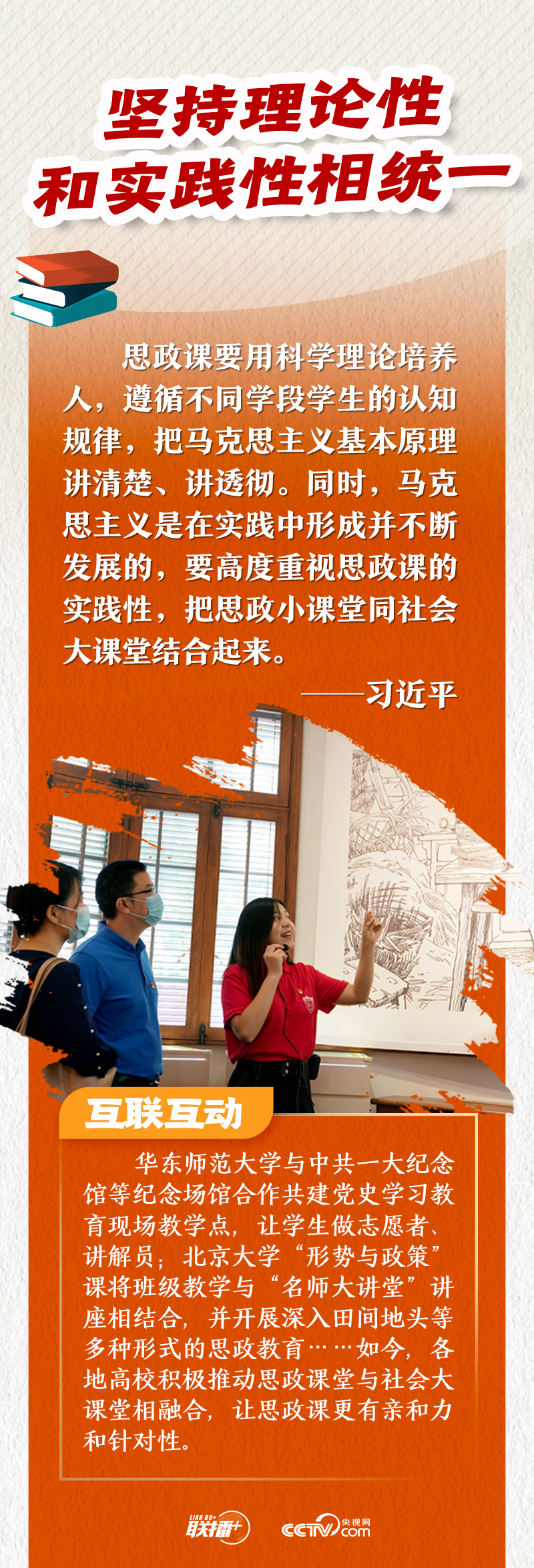 如今,思政课不再是枯燥的理论说教,而是结合了历史故事、新时代精神、地域特色等元素的“思政大餐”。央视网《联播+》特推出海报,与您一同了解思政课的变化。