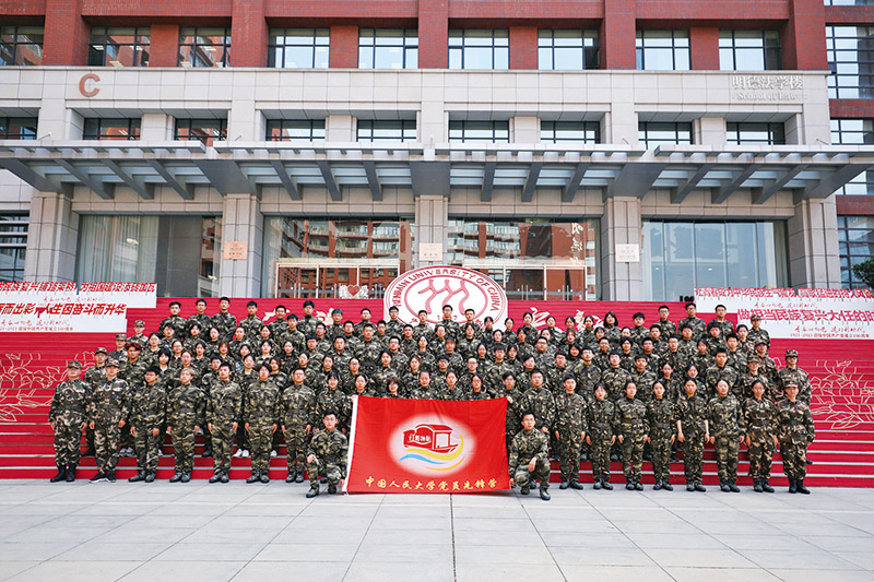 “红船领航”新生党员先进性熔铸计划继承陕北公学开展国防教育的优良传统,是中国人民大学的学生党员教育品牌项目。“红船领航”引领学员们坚定不移听党话、跟党走,努力成长为堪当民族复兴重任的时代新人。图为2021年5月,“红船领航”计划党员先锋营学员合影。中国人民大学供图
