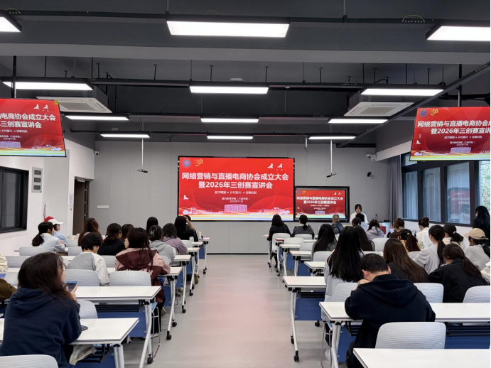 我校举行“网络营销与直播电商”协会成立大会暨“三创赛”宣讲活动