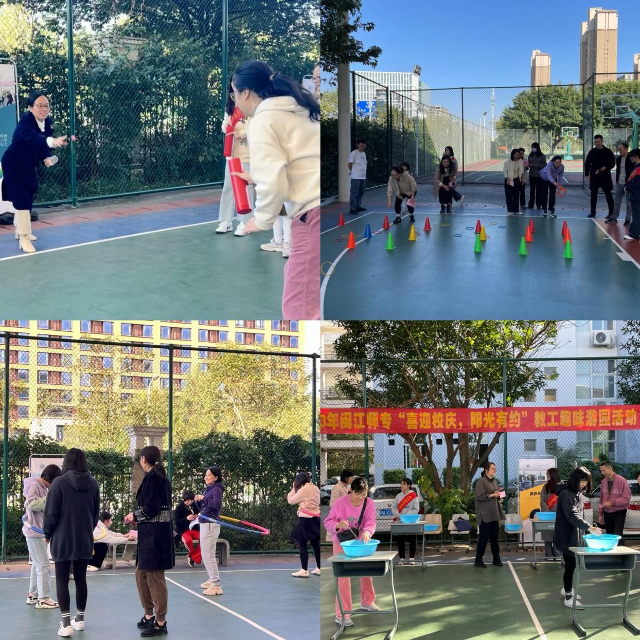 为丰富我校教职员工的文化生活,关注教职工心理健康,营造安全文明、积极向上的校风,引导教职工“走出办公室,拥抱阳光,愉悦心灵”,11月14-17日,校工会组织各二级工会分校区举办“喜迎校庆,阳光有约”教职工趣味游园活动。教职工们热情高涨、踊跃参加,现场气氛十分热烈。我们一起来看看老师们的风采吧。