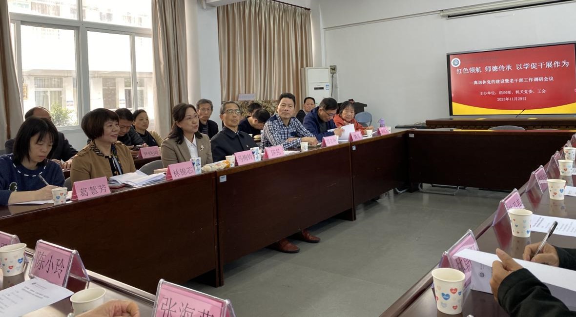 为推动主题教育走深走实,提高离退休教职工工作建设水平,11月29日上午,我校在光禄坊校区2号楼303会议室开展“红色领航,师德传承,以学促干展作为”离退休党的建设暨老干部工作调研活动。福建省教育系统关工委副主任陈晃,副秘书长郑立中,校组织部部长马梅铃,工会常务副主席、机关党委书记林锦芯,工会副主席葛慧芳及30多位涉老组织成员参加此次会议。会议由林锦芯主持。
