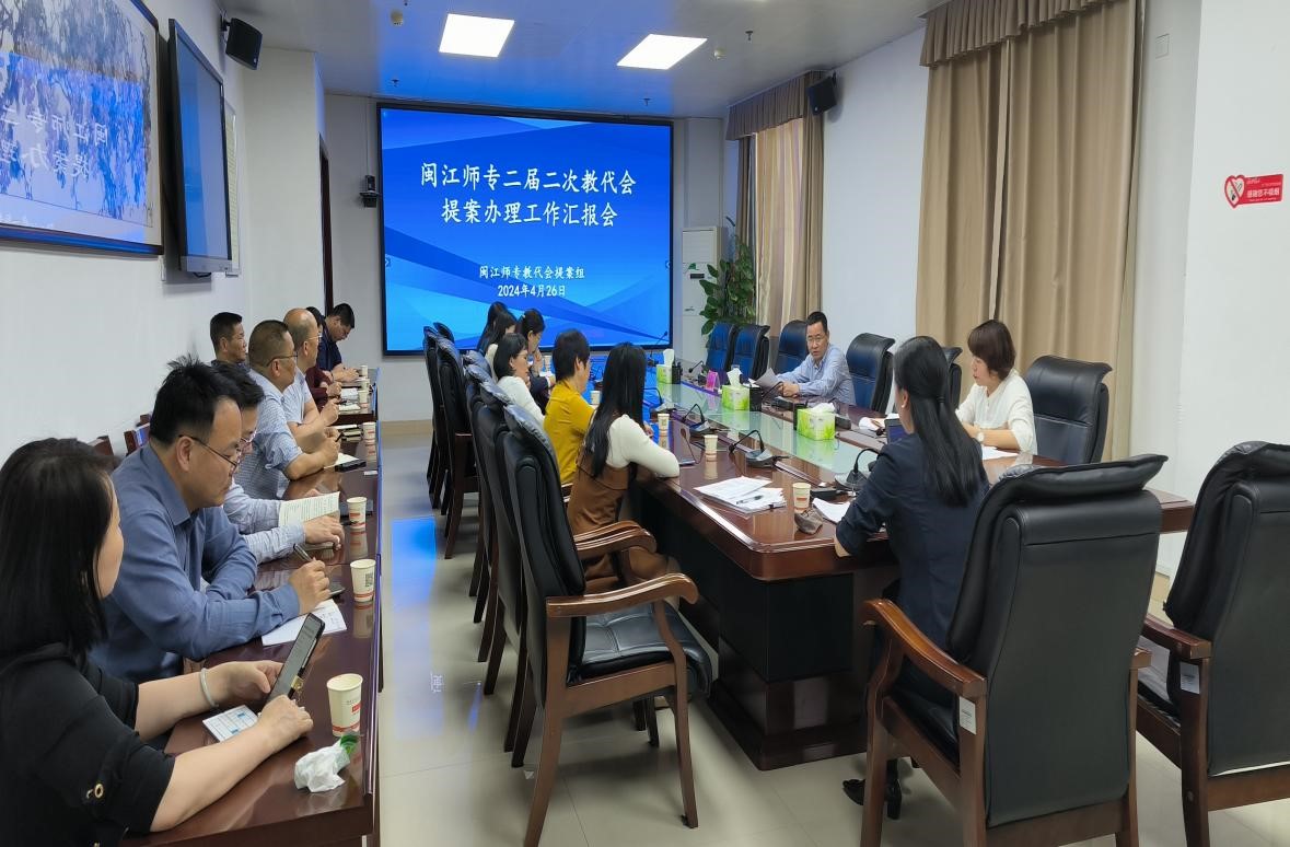 4月26日,学校召开闽江师专二届二次教代会提案办理情况汇报会。校党委委员、副校长谢敏峰,校工会常务副主席林锦芯、副主席庄翠冷、葛慧芳出席会议。会议由谢敏峰主持。