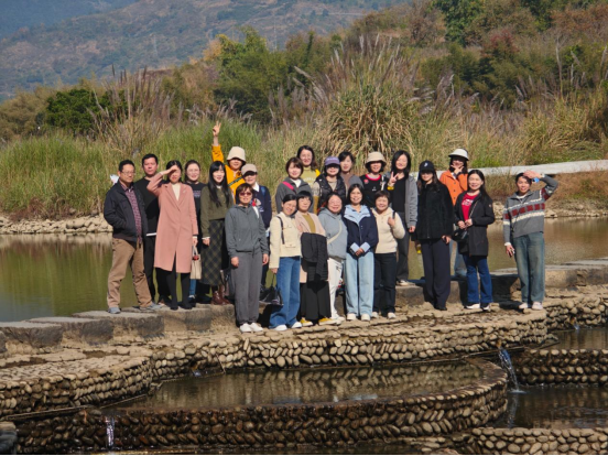 10点30分,活动首站抵达榕水谣。漫步于大樟溪畔,大家欣赏了保存完好的古渡口与连绵成荫的古榕树群,清澈的溪水、斑驳的古道与浓郁的绿意交织成一幅静谧的山水田园画卷,教职工们在自然的怀抱中体会到了生态保护与乡村风貌和谐共存的美好。