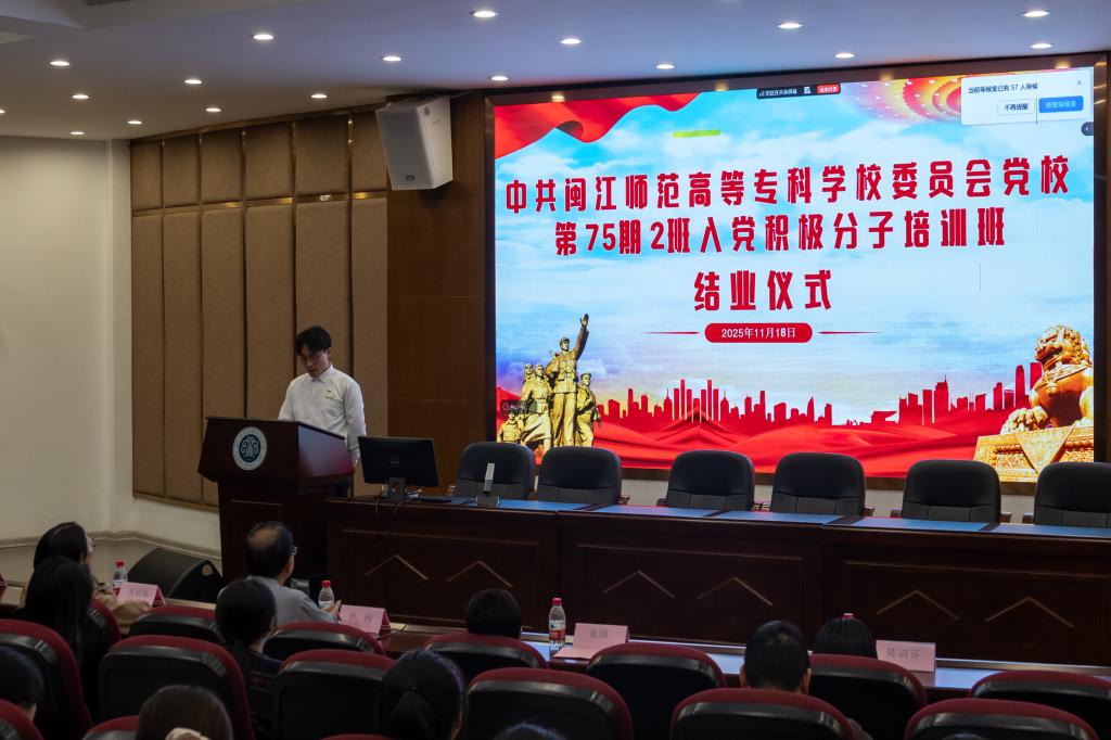 为进一步做好党员发展工作,提高入党积极分子的政治素质和理论修养,按照学校党校2025年下半年入党积极分子培训工作安排,11月6日至11月18日,校第75期2班入党积极分子培训班在仓山校区举办。