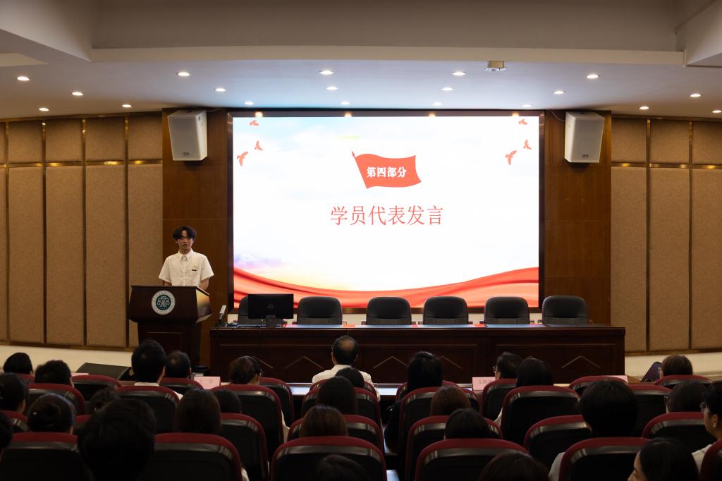 11月18日,校第75期2班入党积极分子培训班结业式在仓山校区学术报告厅举行。医护学院党总支副书记张瑛高度评价了本次培训取得的丰硕成果和学员们表现出的勤勉专注、昂扬向上的精神风貌,希望全体学员要坚持知行合一,在勤学善思与笃行实干中锤炼本领、增长才干;时时处处以高标准严格要求自己,争当表率、以实际行动践行初心使命。各学院学员代表依次汇报培训期间的学习成果与深刻感悟。