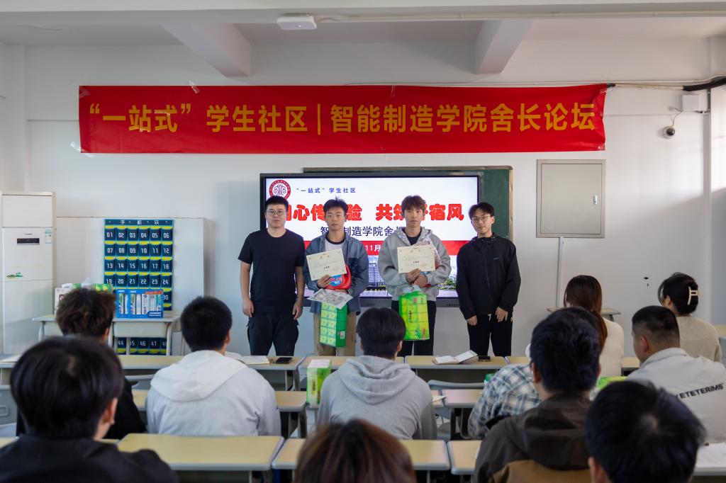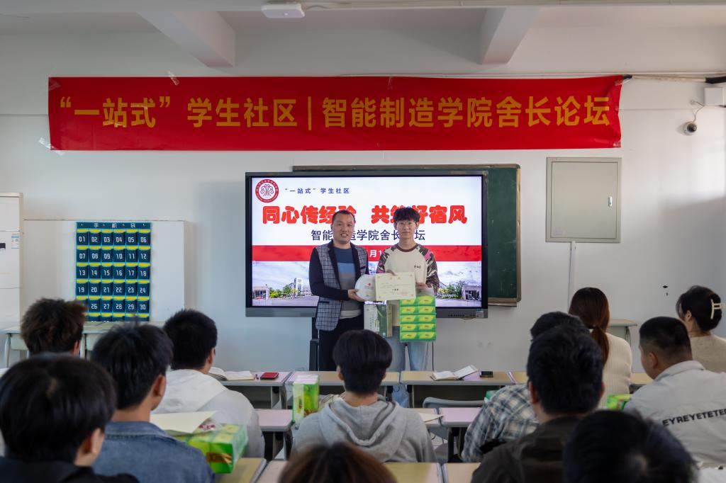 现场,11位舍长分别围绕宿舍和谐人际关系、宿舍安全与自我管理、宿舍卫生与整洁、宿舍作息差等分享了宿舍建设的实践思路,期望以宿舍“家文化”建设为抓手,让好习惯成为自觉,让彼此关怀成为常态,让共同的价值观引领方向,让责任在分工协作中生根,让宿舍成为每个人舒缓压力的温馨港湾。本届舍长论坛同步评选出最佳分享奖,其中一等奖1名、二等奖2名、三等奖3名,优秀奖若干。