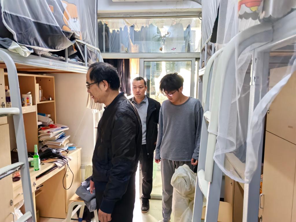 检查组一行深入学生宿舍,检查宿舍卫生与安全用电情况。检查中,学院领导嘱咐离校学生离宿前要切断电源、关好门窗、妥善保管物品,注意交通安全、饮食安全等;提醒留校学生要遵守宿舍规定,严禁使用违规电器,及时清理杂物,共同维护生活环境,确保假期安全出行、安全住宿。领导老师也叮嘱同学们要保持宿舍通风、规律作息、加强锻炼,做好健康管理。