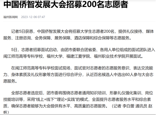 报道我校参与中国侨智发展大会招募200名志愿者