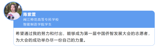 据悉,第一届中国侨智发展大会将于12月20日至22日在福州举行,以“五洲聚‘福’汇侨智,同心共圆中国梦”为主题,举办开幕式暨主论坛、产业对接、“双创”大赛、专题论坛、展览展示和配套活动等。闽江师范高等专科学校选拔60名志愿者为大会提供志愿服务,招募工作由校团委牵头,人员招募、组织面试、礼仪集训等工作由智能制造学院团委承办。