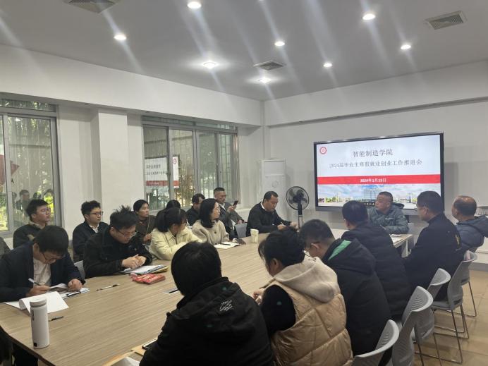 为扎实推进2024届毕业生就业创业工作,确保寒假期间就业创业工作不断线,1月15日上午,智能制造学院在17号楼党建会议室召开2024届毕业生寒假就业创业工作推进会,会议由学院党总支书记李扬新主持,全体教职工参加会议。