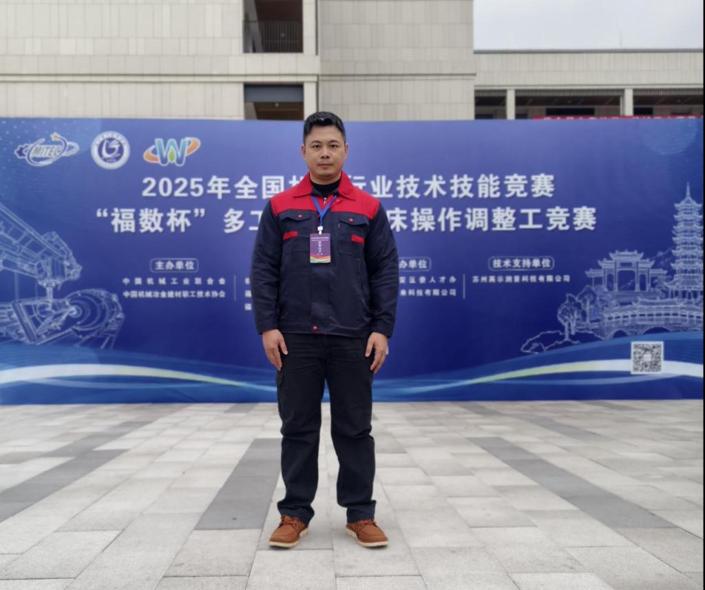 2025年12月22日,全国机械行业技术技能大赛--“福数杯”多工序数控机床操作调整工竞赛颁奖仪式隆重举行,智能制造学院教师陈攀凭借精湛技艺与稳定发挥脱颖而出,一举斩获职工组一等奖,同时被授予“全国机械工业技术能手”重磅荣誉,以师者匠心,为职业教育与技能人才培养写下亮眼注脚。